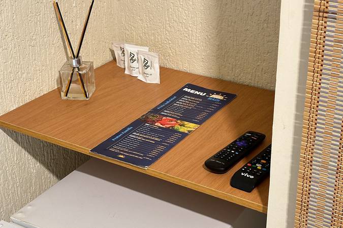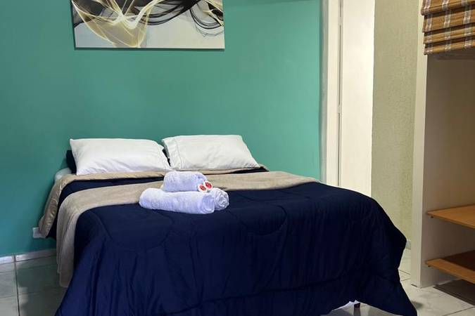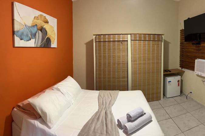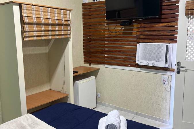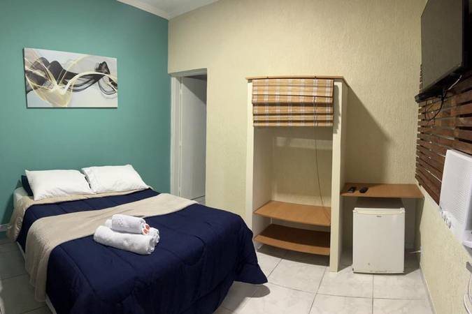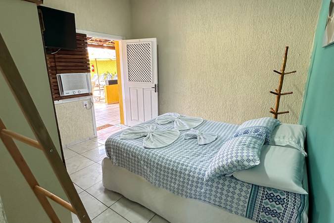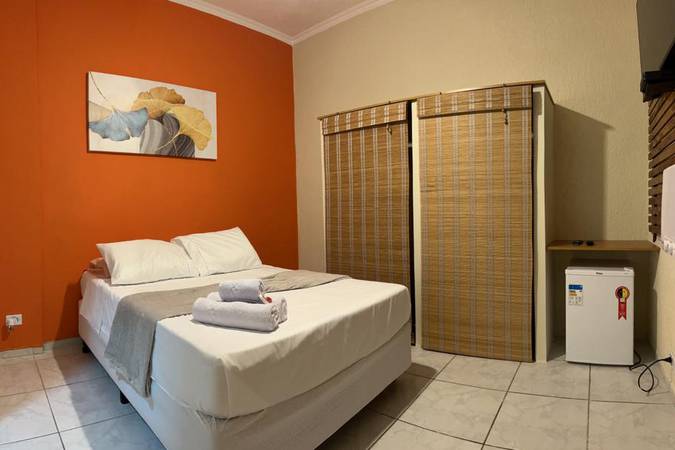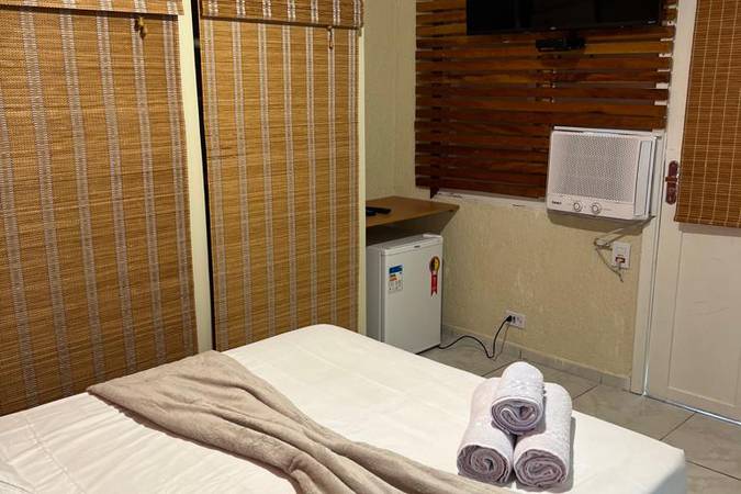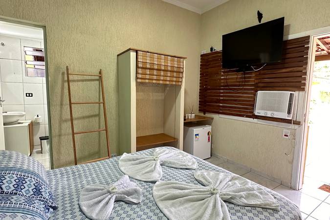 Acomodação perfeita para 02 hóspedes com uma cama casal, TV 43” com pacote de canais Vivo TV, varanda com vista para os jardins e as seguintes comodidades: