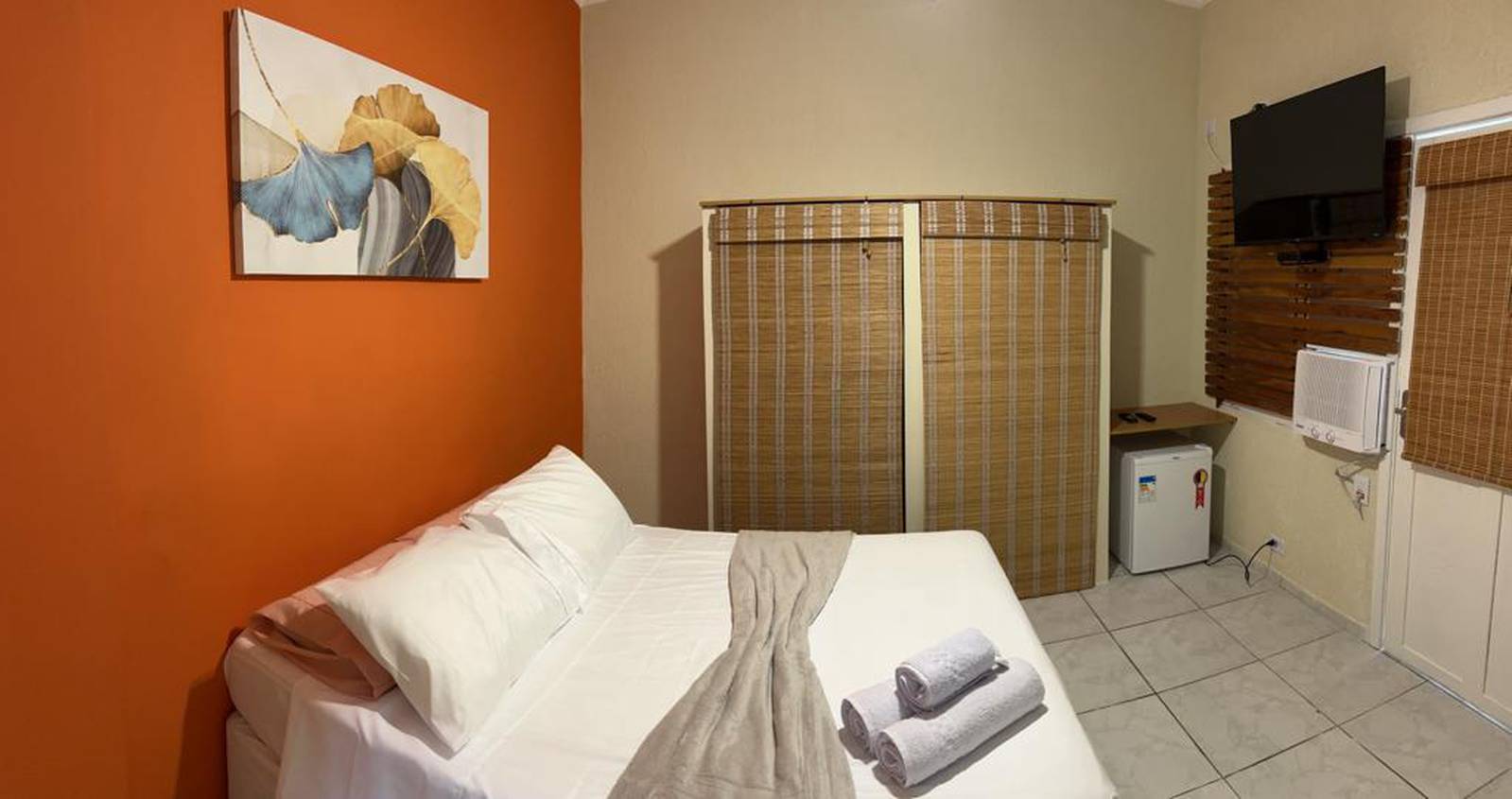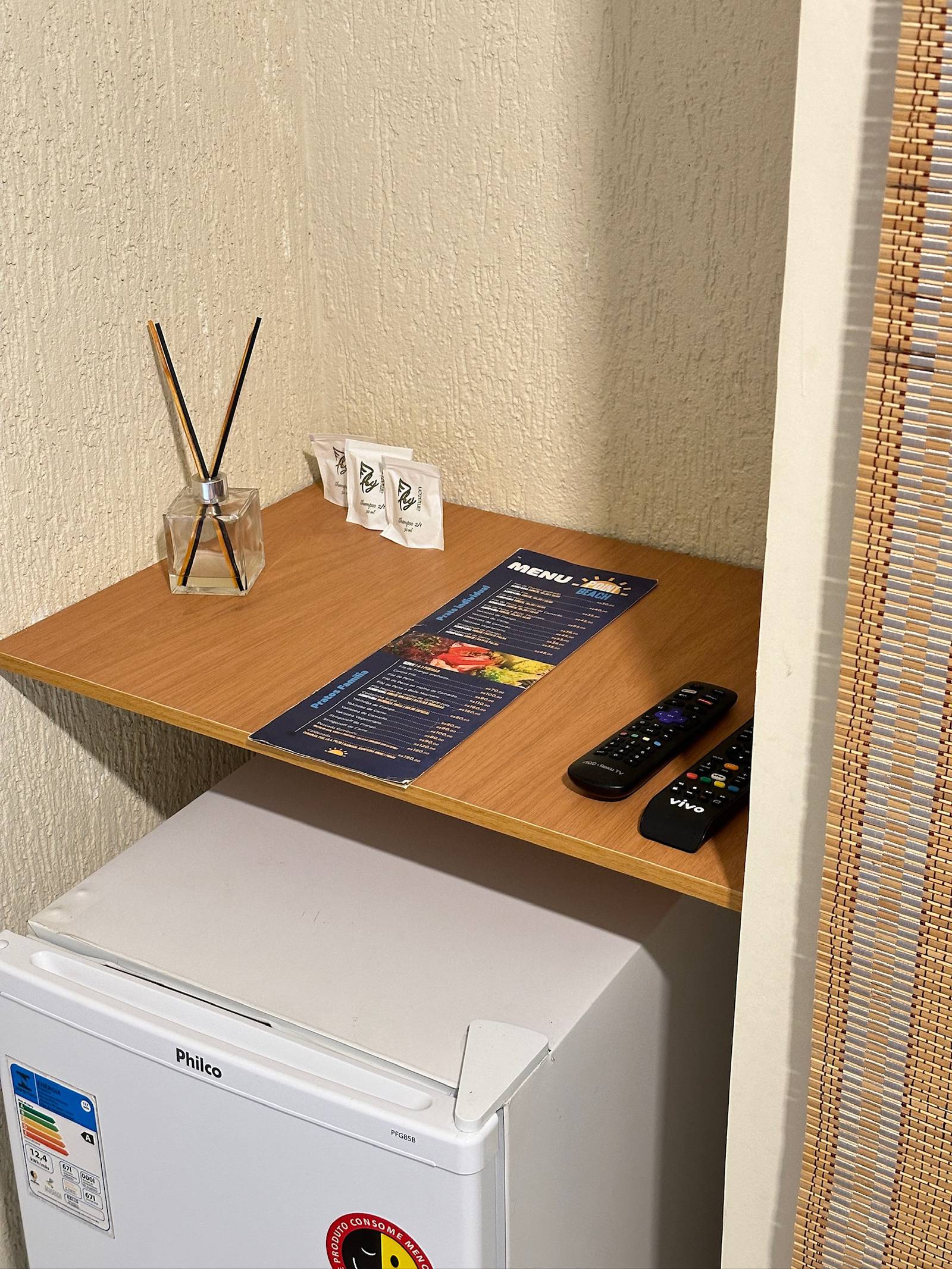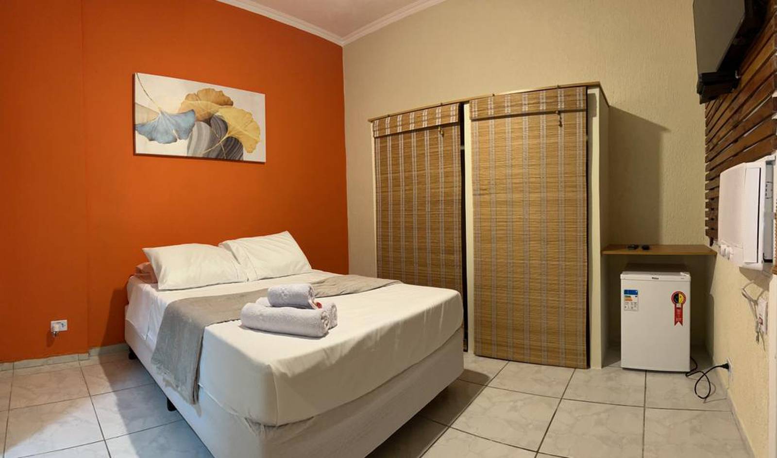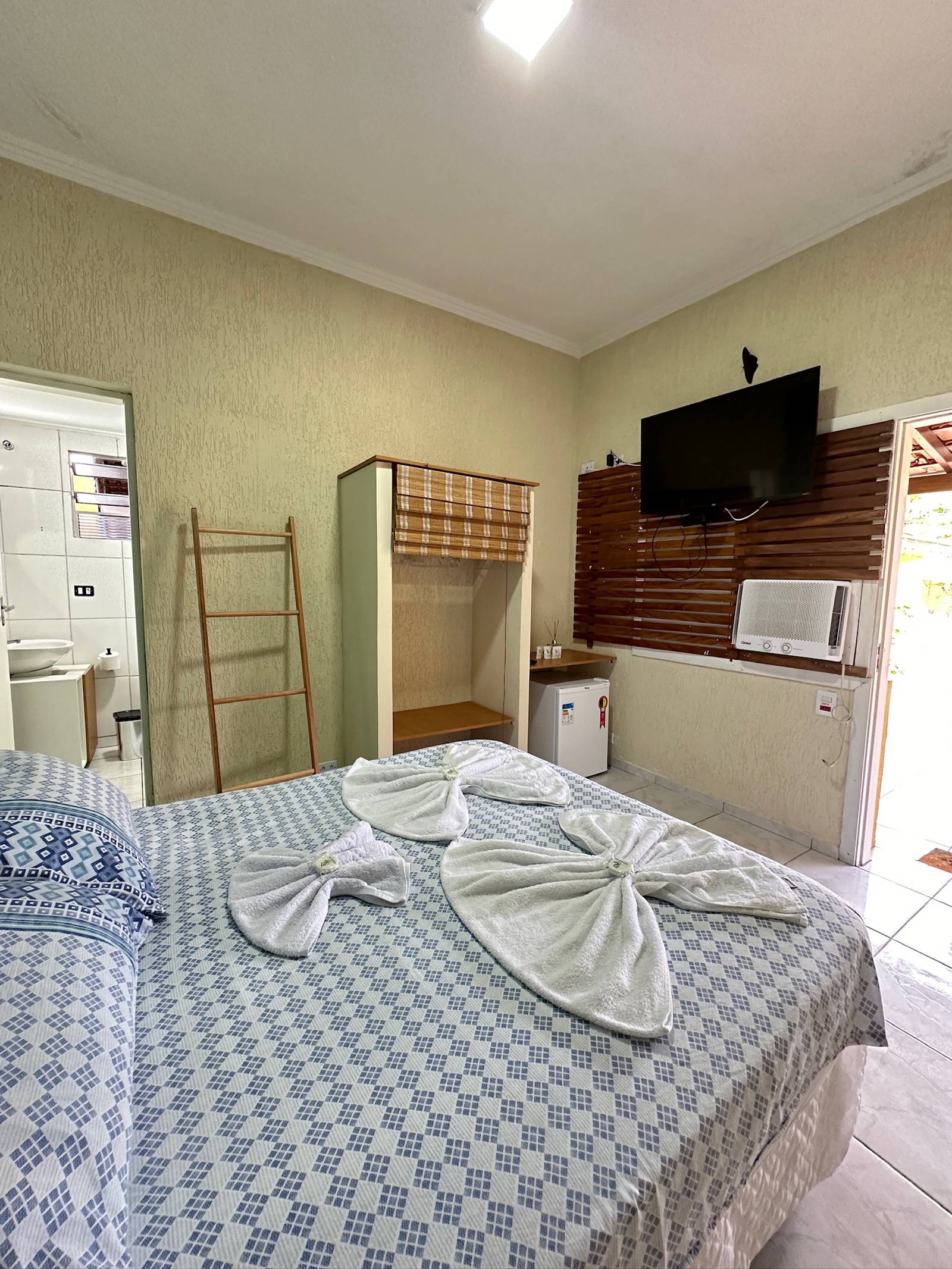 Acomodação perfeita para 02 hóspedes com uma cama casal, TV 43” com pacote de canais Vivo TV, varanda com vista para os jardins e as seguintes comodidades: