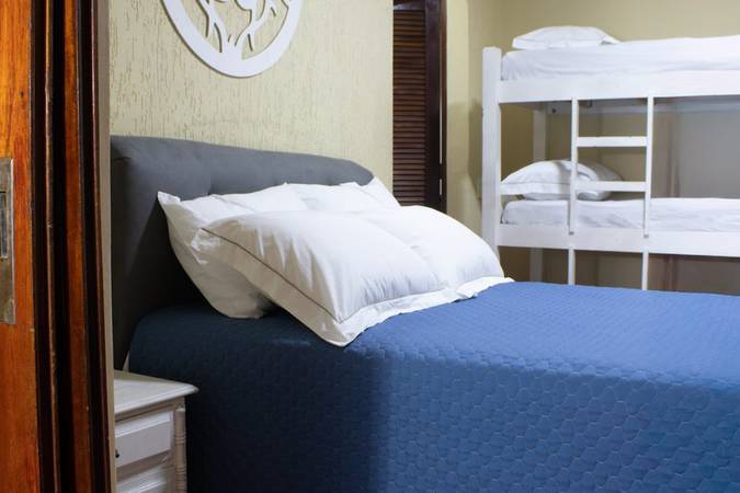 Acomodação perfeita para 05 hóspedes com uma cama casal + um triliche, TV 43” com pacote de canais Vivo TV e as seguintes comodidades: